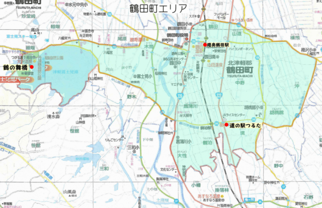 主要设施 酒店 | 主要设施: 鹤之舞桥、鹤山工业园区、道之驿鹤田 酒店: 津轻富士見荘 |