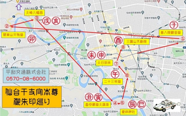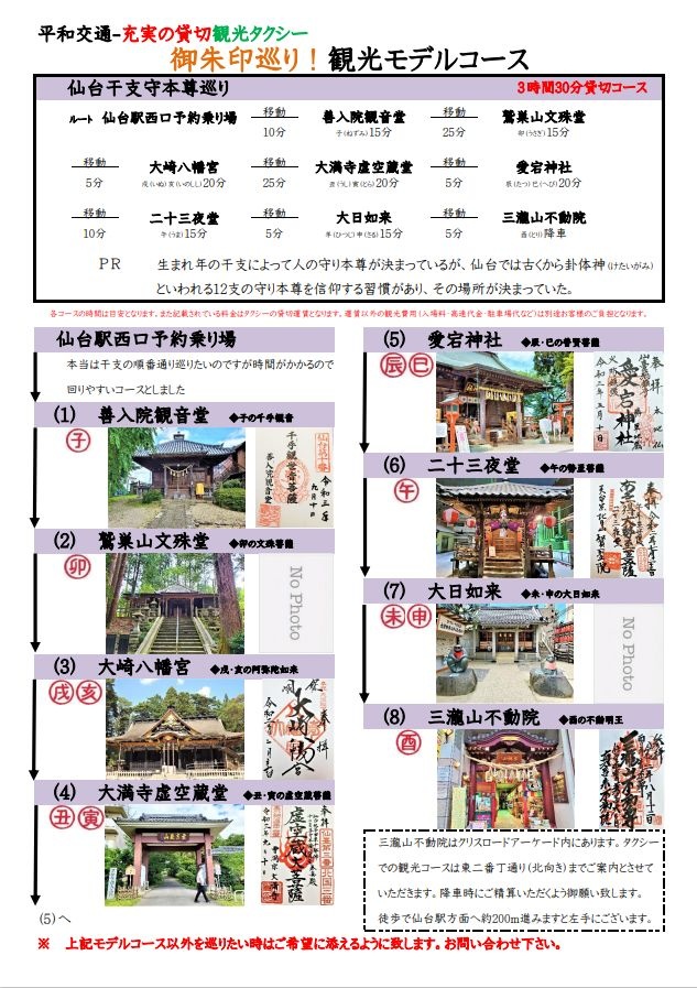 北海道交运事业协同组合的和平的交通 - 御朱印之旅!观光示范课程页面每门课程的信息 仙台十二生肖守护者校长形象之旅(3小时30分钟私人课程)仙台十二生肖守护者校长形象参观 <所需时间>约3小时30分钟<旅游行程>从仙台站西口出租车预约处出发↓观音堂禅院↓和山文柔道↓大崎八幡宫↓大满寺国造堂↓爱宕神社↓二十三屋堂↓rai井大日↓前往御泷山不动院<价格>普通车22,400日元 预订和信用卡支付巨型 ¥34,160 *祭祀费、红印费等费用由客户承担。 返回列表分享