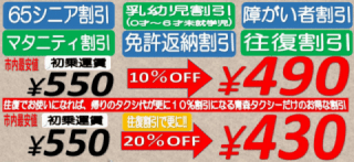 往返折扣 | 青森出租车 | 往返折扣高达 20%!来回优惠券结合各种折扣高达 20%! . 到青森出租车HP首页 65岁、孕妇、学龄前儿童的优惠点击这里 通过电子邮件查询,请单击此处电话:017-738-6000030-0135青森县青森市新町野字几田 2-28青森出租车股份有限公司 ℡017-738-9977 传真017-738-6121