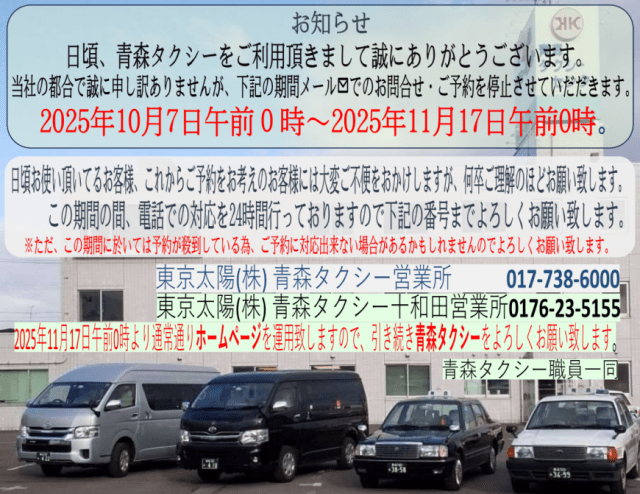 青森出租车十和田(营)|定额出租车|申请【咨询】请求 “HK TAXI”出租车调度应用程序 各地区到定额出租车TOP页面 青森出租车HP首页电话:0176-23-5155青森县十和田市东二十番町034-0014 15-18青森出租车十和田营业所℡0176-23-5155 传真0176-22-1398